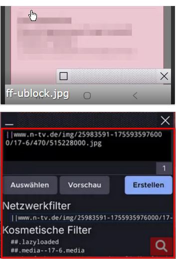 FF Android: Wie mit uBlock Orgin zu blockierende Elemente auswählen?
