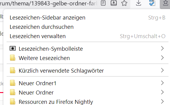 Ich habe das Standard Profile geändert, dann waren die gelben Ordner wieder daAllerdings waren dann die Bookmarks im Bookmark Manger weg und die Darstellung anders. Mein Gott wäre ich doch beim alten Release geblieben