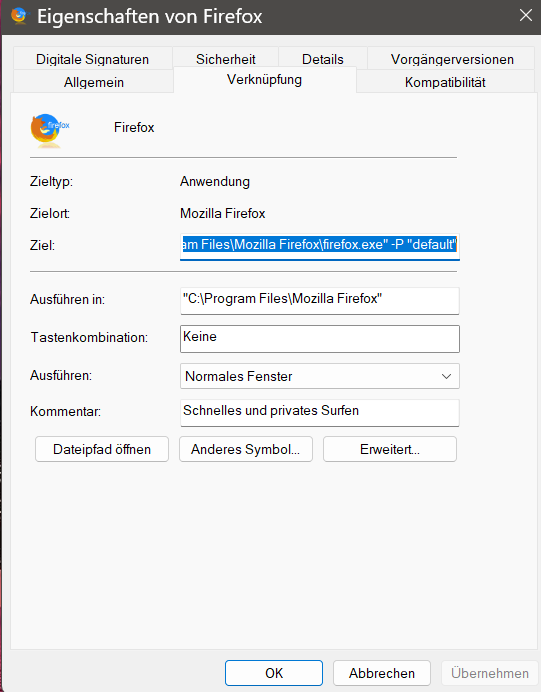 Was mir noch einfällt, prüf doch bitte mal in der Firefox Verknüpfung auf dem Desktop was hier bei dir eingetragen ist: