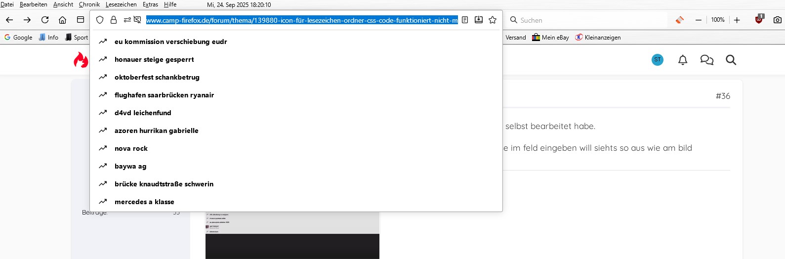 Icon für Lesezeichen-Ordner CSS-Code funktioniert nicht mehr
