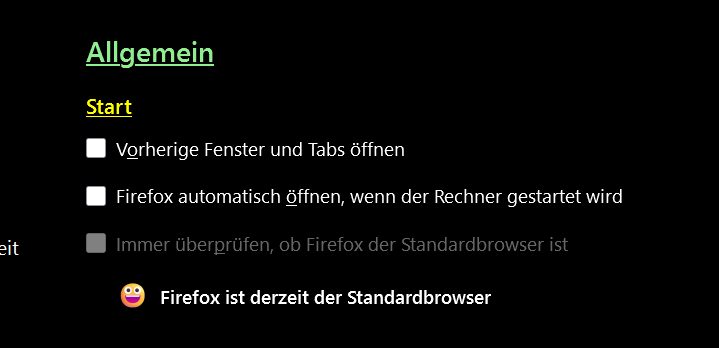 Kurzfristig erscheint dann beim Rechtsklick auf das Icon das schon geöffnete Fenster erneut mit seinem Tab im neuen Fenster, aber der verschwindet sofort wieder, und die eingetragenen Tabs werden geöffnet.