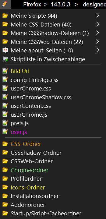 Jedoch werden viele dieser Funktionen bei mir durch mein Appmenu.uc.js abgedeckt!