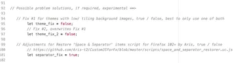 // Adjustments for Restore 'Space & Separator' items script for Firefox 102+ by Aris, true / false