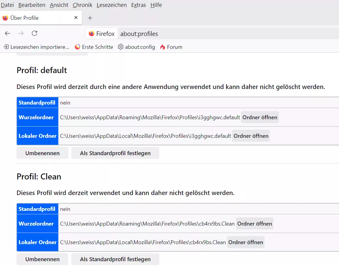 Nach anmachen des Rechners installierte der CCleaner (kostenlose Version) von selbst ein Update. ( Habe normalerweise alles auf: Frag mich erst stehen. ) Als er fertig war habe ich einen erzwungenen Neustart machen müssen und seitdem zeigt Firefox keine Lesezeichen mehr an. Es ist jetzt nicht so das die LZ ausgeblendet sind. Auch nicht das ich abgespeicherte neu laden könnte. Es ist nichts mehr da. Mache ich den Browser auf kommt eine Meldung wie: wird von einem anderen Programm benutzt bzw. von einem Virenprogramm blockiert). Mache ich eine beispielseite auf (http://www.google.de) und möchte die Probehalber abspeichern lässt er das nicht zu. Alles was ich letzte Nacht und heute gelesen (Firefox Hilfe) und ausprobiert habe funktioniert leider nicht.