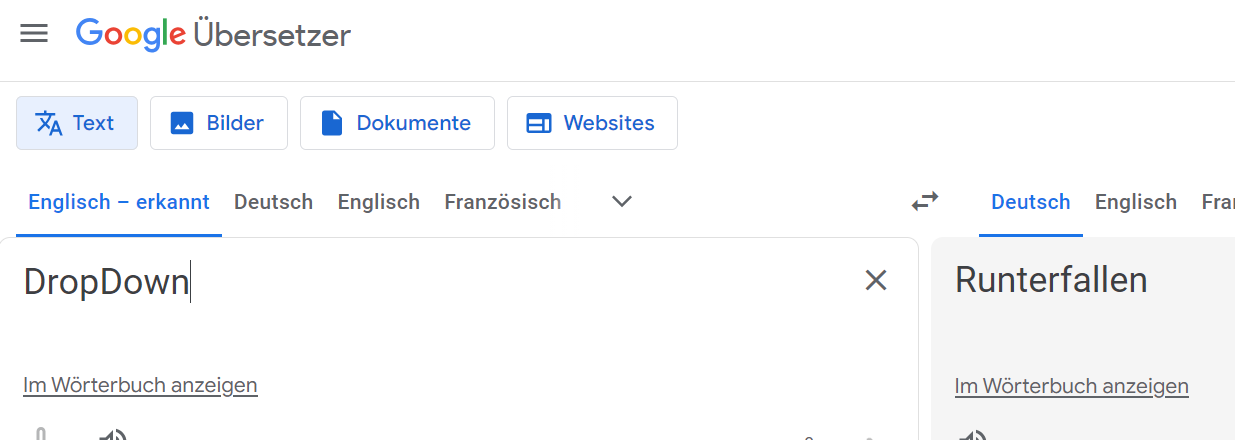 Nun sollte sich ein neuer Tab öffnen und der Text oder das Word übersetzt werden!