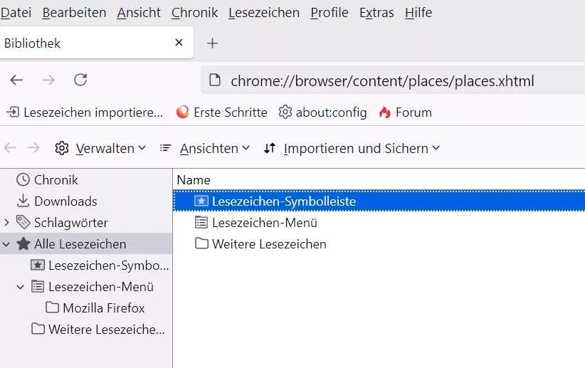 Danach kannst du den unteren Ordner wieder löschen. Beim Importieren darauf achten, in welchen Ordner/Leiste man die Lesezeichen importiert.