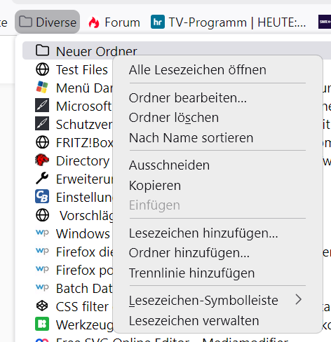 Eingeschränkter Zugriff auf Lesezeichen in Unterordnern