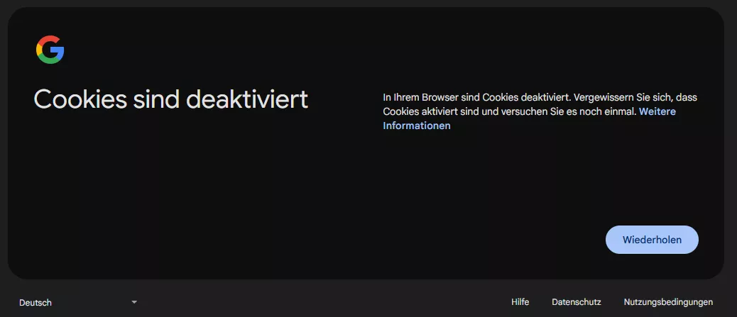 Wenn besagte Meldung erscheint, wenn eben keine Cookies gesetzt werden dürfen.