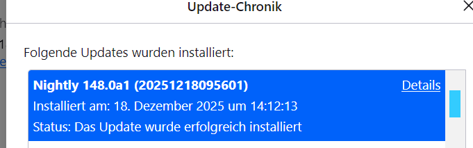 • Wie gesagt: Die neue Suchleiste verwendet eine andere ID. Und man sieht es auch am Design, dass das bei dir noch das alte Suchfeld ist. Also ist entweder die Nightly-Version nicht aktuell oder browser.search.widget.new steht auf false. Bevor jemand auf die Idee kommt: Das ist natürlich keine Lösung für dieses Thema, da die Option verschwinden wird.