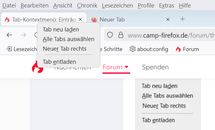 Ich habe ein paar wahrscheinlich einfache Fragen bezüglich des Tab-Kontextmenüs und ich weiß, dass das hier auch schon (bestimmt sogar mehrmals) beantwortet wurde, aber ich finde diese Themen trotz ausgiebiger Suche nicht mehr. Vielleicht kann mir jemand einfach nur den oder die Links zu den Themen in einer Antwort posten.