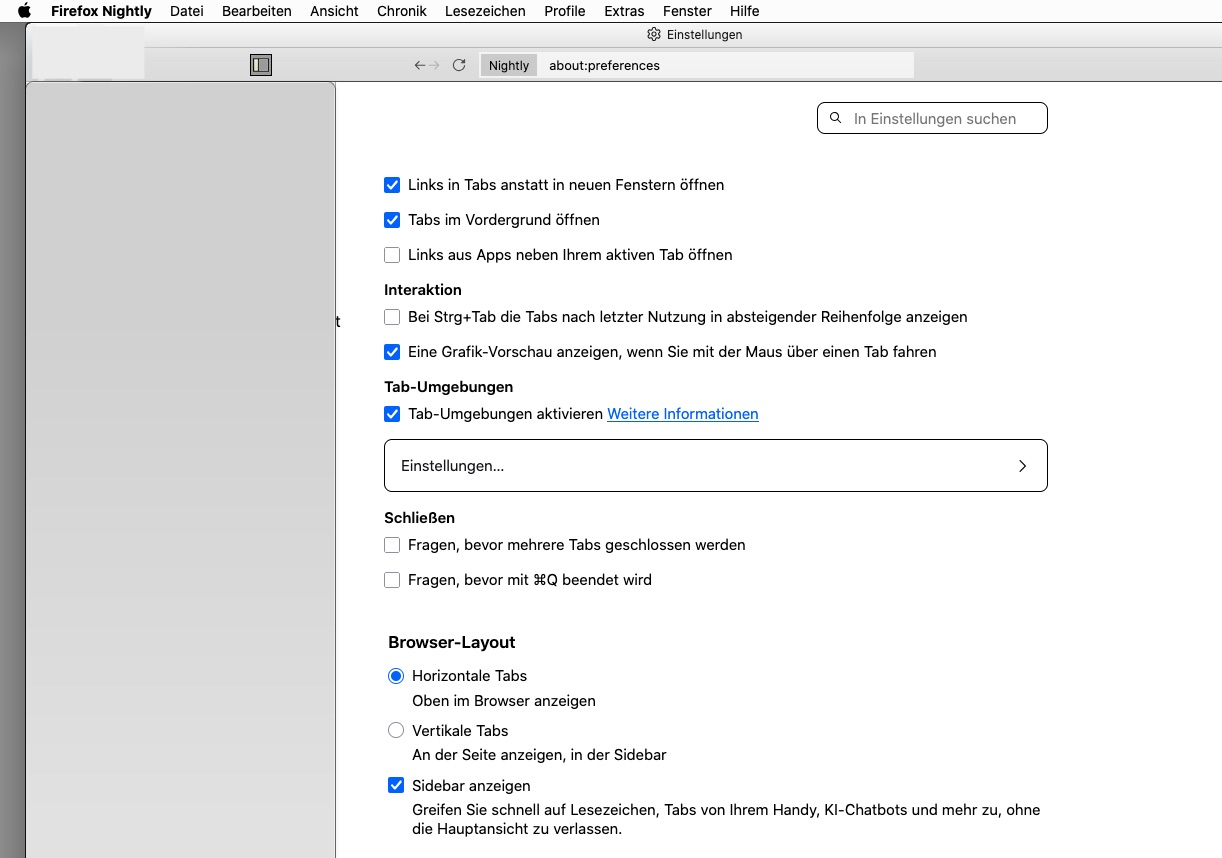 Hier mal 2 Szenarien mit leerer Sidebar, am Mac im Nigthly.