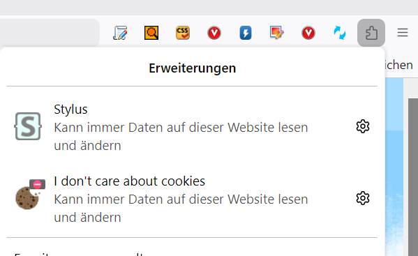 unter Symbolleiste anpassen sind sie nicht da, ich kann nicht auf Gmail uvm als Symbol zugreifen, nur uBlock ist da.