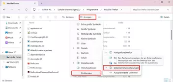 firefox.exe steht unter Program wirklich nicht, aber Firefox mit dem Icon, Eigenschaft "Anwendung". Das hat mich irritiert. Ich kann FF auch von dort aufrufen. Offenbar fehlt da nur die Dateierweiterung.