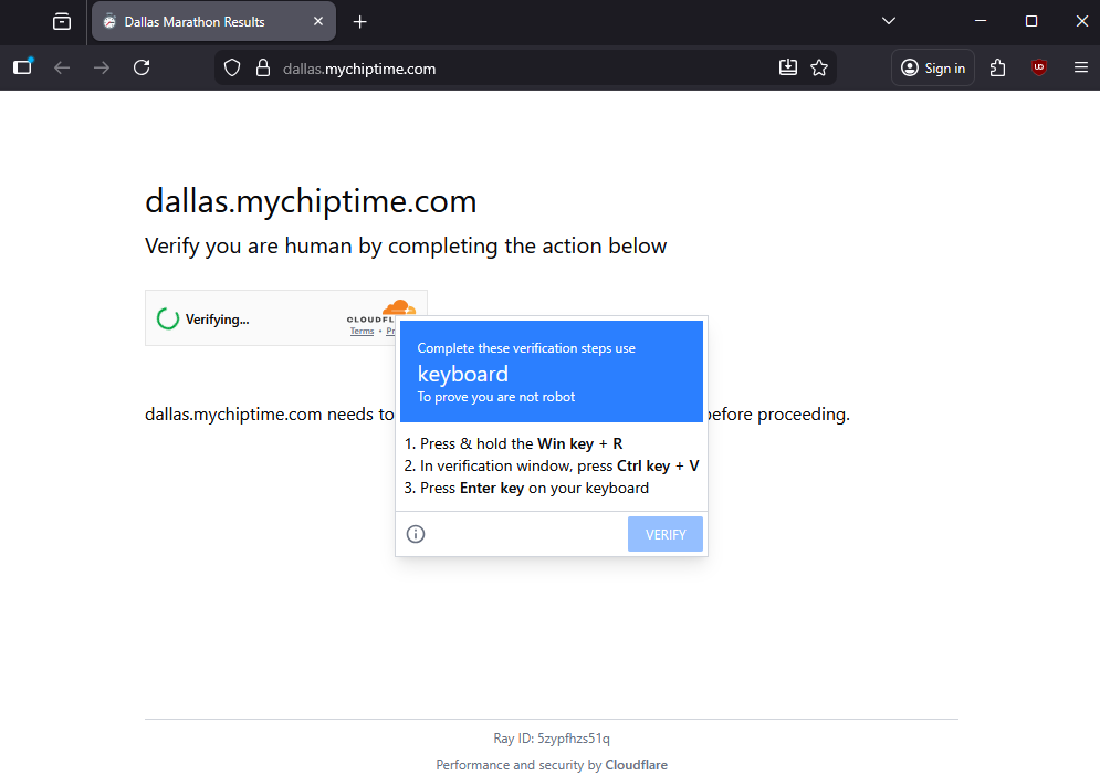 Phishing Seite versucht Codeausführung per Copy and Paste : Captcha von Cloudflare soll mit der Tastatur gelöst werden