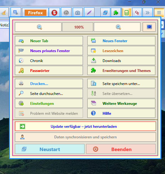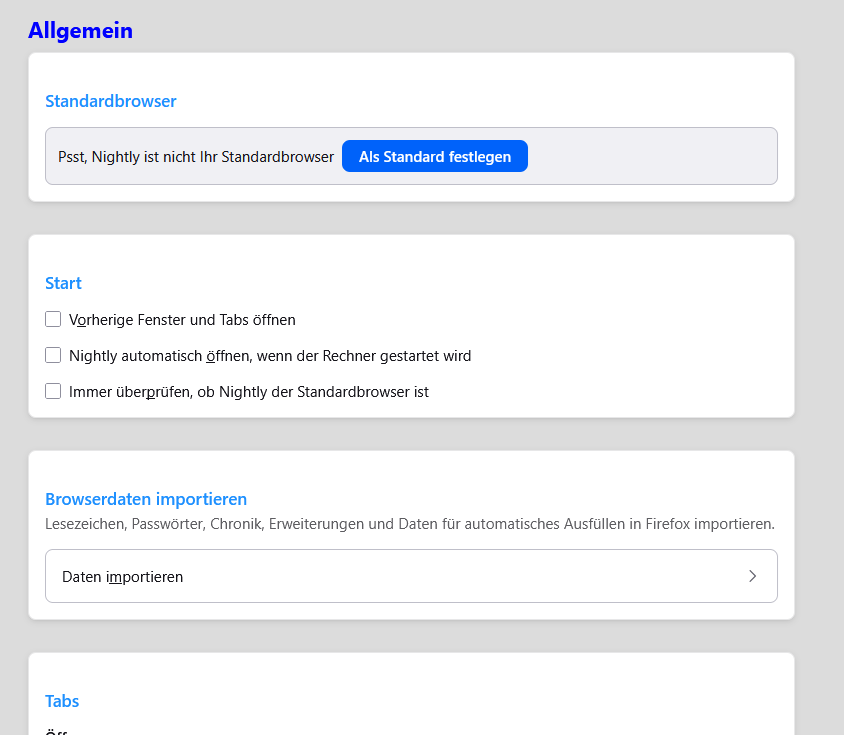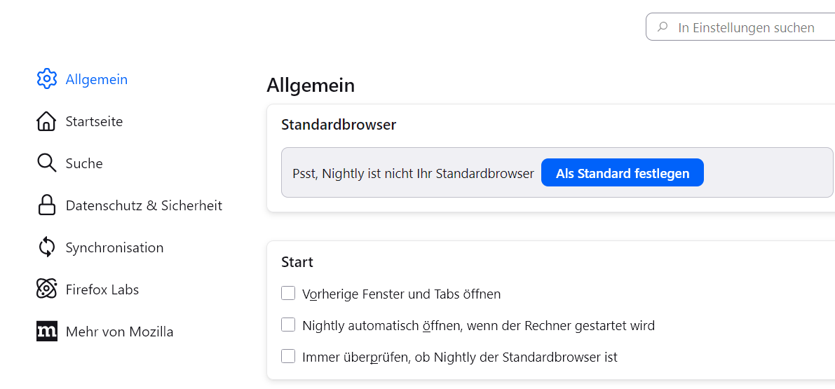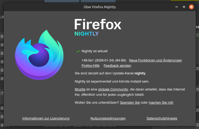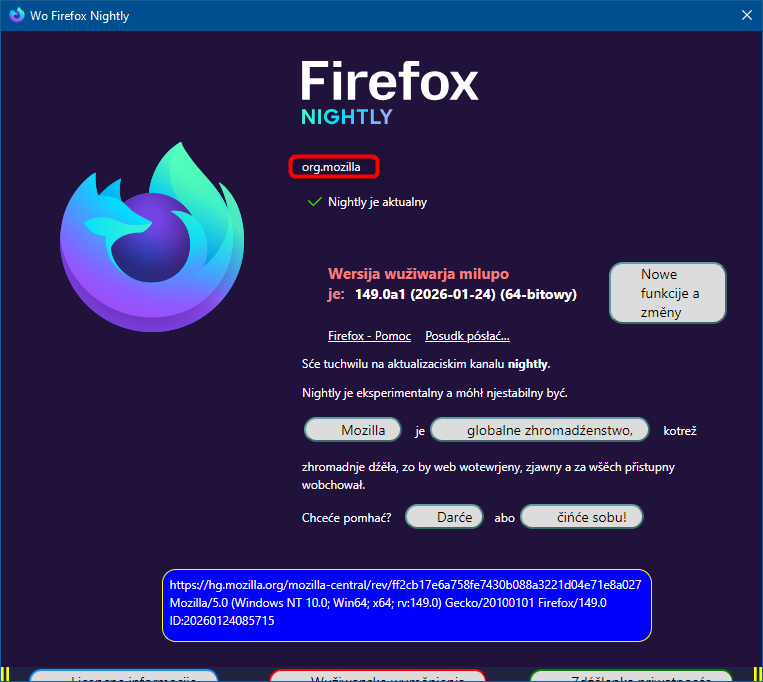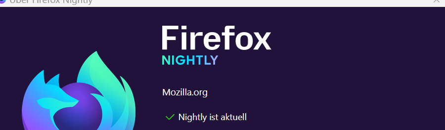Text „org.mozilla“ in Fenster Über Firefox Nightly