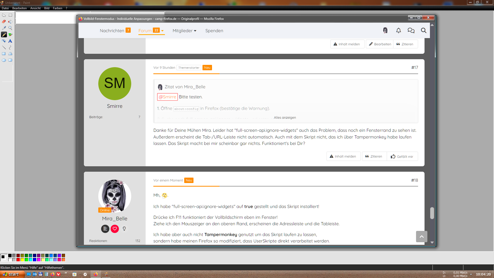 Interesse habe ich aber immer noch an der Möglichkeit, dass es sich doch noch mit dem Vollbildmodus-Im-Fenster ausfuchsen lässt, auch wenn es durchaus unwahrscheinlich ist, dass sich jemand damit beschäftigen wird.