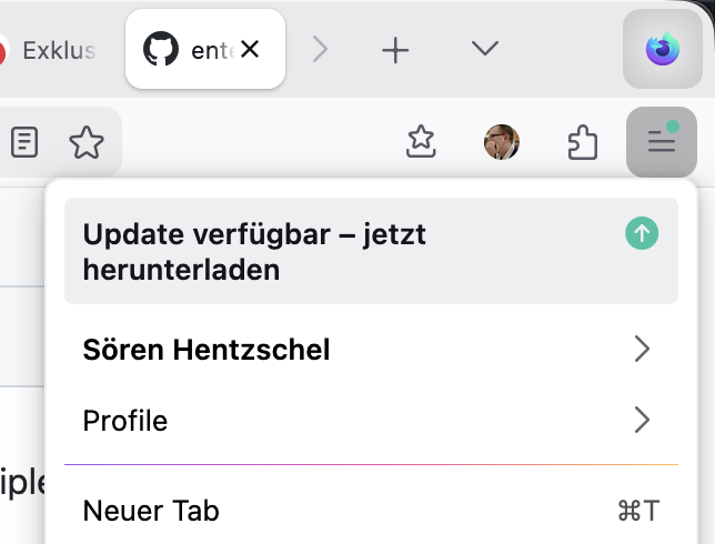 Bei anderer Software gibt es einen Update-Button in der Oberfläche (bei einem Browser wäre das oben) integriert, der bei einem Update farblich hervorgehoben wird. Vielleicht erfolgt das ja in weiter Zukunft als nächster Schritt im Firefox, falls technisch umsetzbar ist und das Userfeedback nicht dagegen ist.