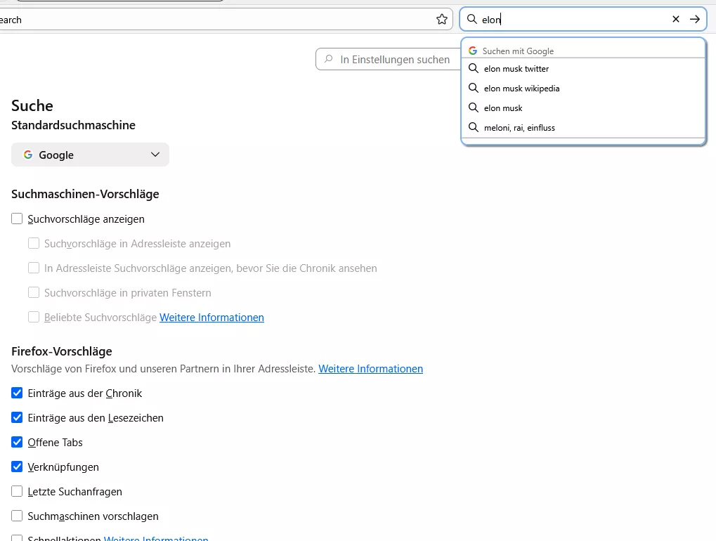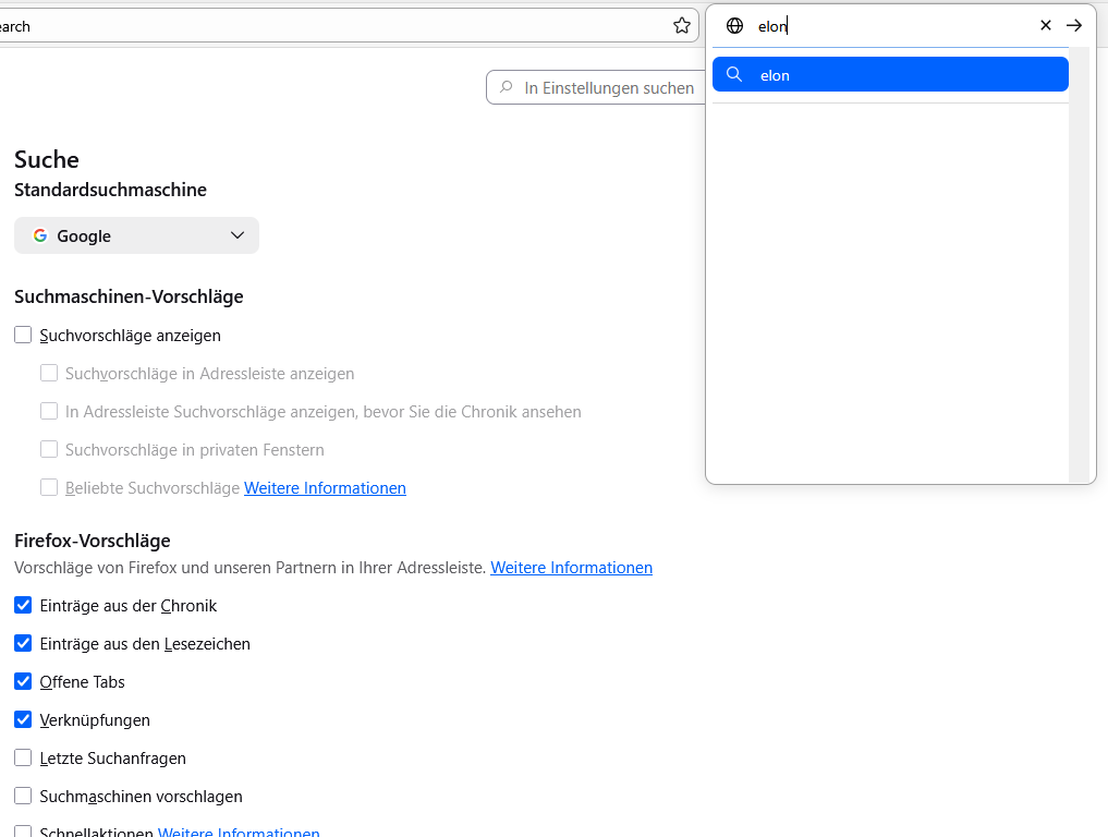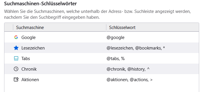 Frage: (Wie) kann ich dauerhaft die klassische Suchmaschinenauswahl für eine einzelne Suche behalten, die einfach während der Suchbegriff-Eingabe erscheint?