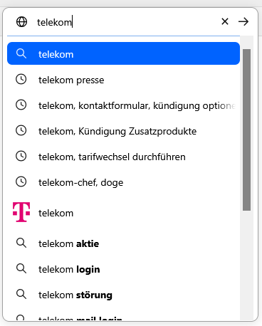 Tippt man nun was ein, wird der gesamte Rahmen wieder grau und kommen Vorschläge, was man dort bereits suchte und darunter dann andere Suchvorschläge zum Begriff/zu den Buchstaben.
