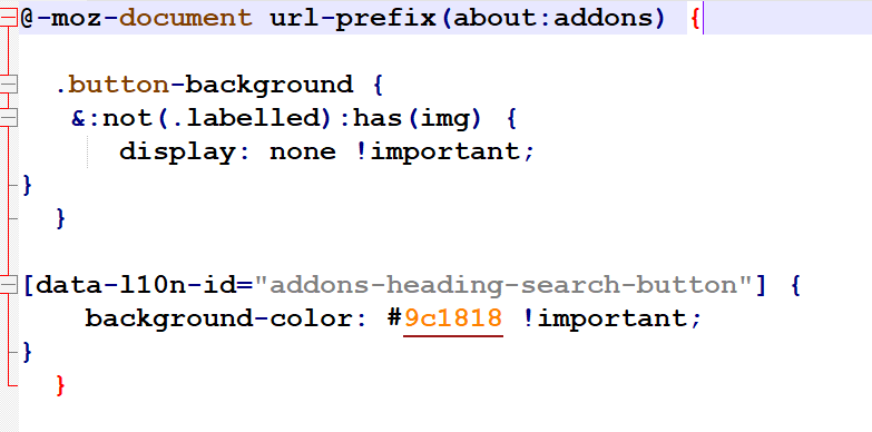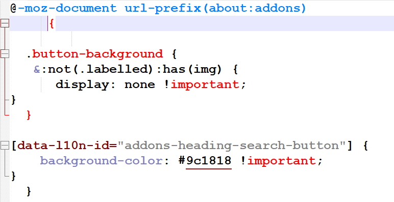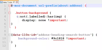 Wenn ich eine .js Datei erstelle, und darin einen .css Code einfüge, dann wird mir die letzte schließende rote Klammer richtig angezeigt.