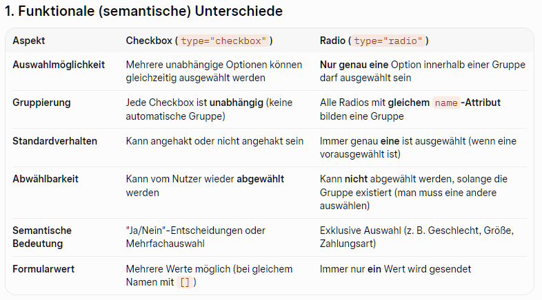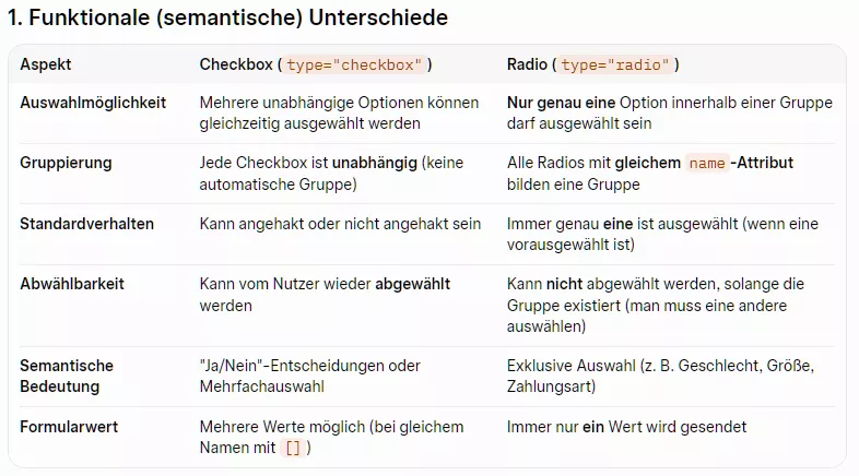 , aber wo ist der Funktionsaspekt, bzw. der funktionale Unterschied zw. checkbox und radio