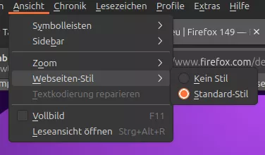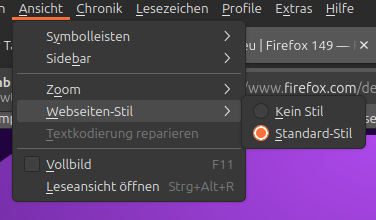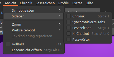 Wobei die Darstellung Menüleiste > Ansicht > Sidebar als Checkboxen dann nicht richtig wäre, die unter Webseiten-Stil als Radiobuttons aber schon...