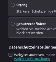 Aber warum ist deine Darstellung (Screen 3+4) der Radiob. so angelehnt an die Checkb.? Radiob. auch im Zusammenhang mit Websitecontent/about:preferences könnten dort sinnvoller sein. So aber jetzt stelle ich die Menüleiste endgültig auf display:none;