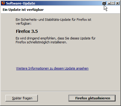 So wie es scheint, ist der Releaseprozess von Fx 3.5rc2 angelaufen. Bei positiven Verlauf ist möglicherweise zeitnah mit der Auslieferung /Veröffentlichung zu rechnen. Und diesmal wird es im Unterschied zum RC1 (AUS von Beta) ein partielles AUS- Update RC1 -> RC2 geben.