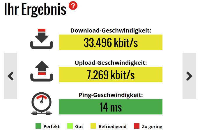 Ich nutze übrigens WLAN, was auch zu einer Absenkung der Geschwindigkeit führen kann.