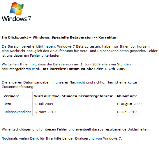 dass "Juni 2009" als Datum für den 2-stünden Shutdown falsch ist.