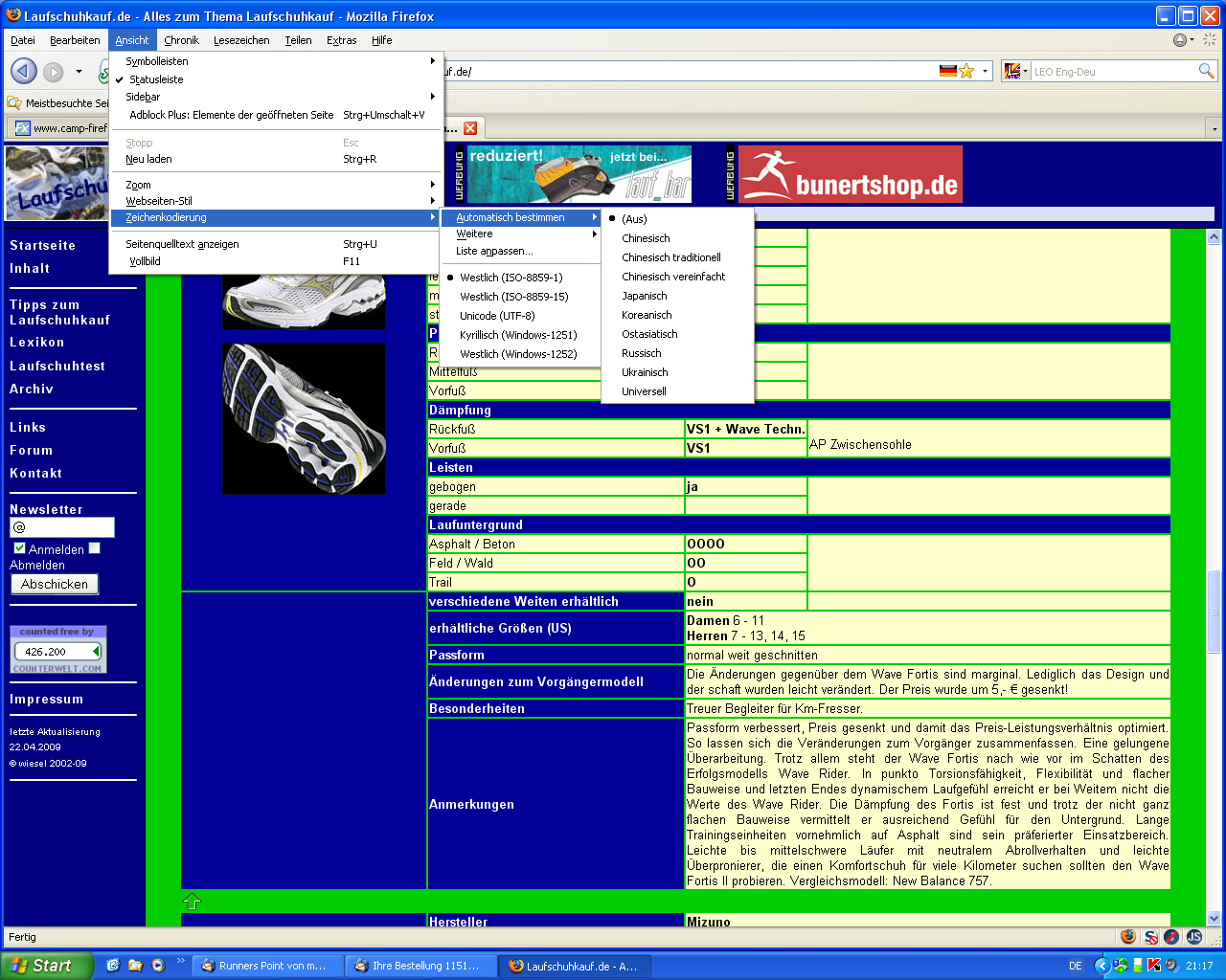 Und warum steht bei Dir nun Westlich (Windows 1252)?
