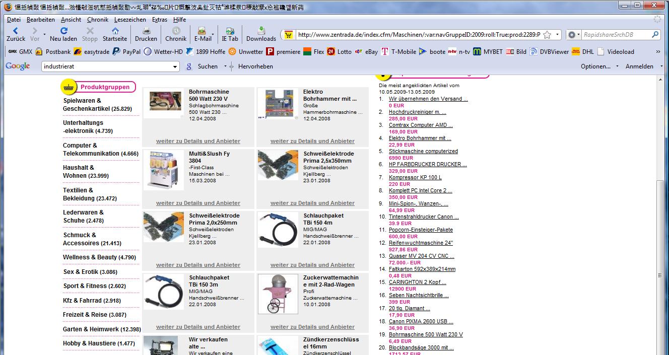 So und nun habe ich noch einen Screenshot vom 9.4.2009 als mir dies erstmalig aufgefallen ist. Da war ich auf einer völlig anderen Seite.