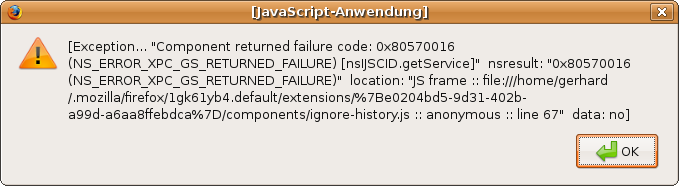 FF bringt beim Öffnen Fehlermeldung