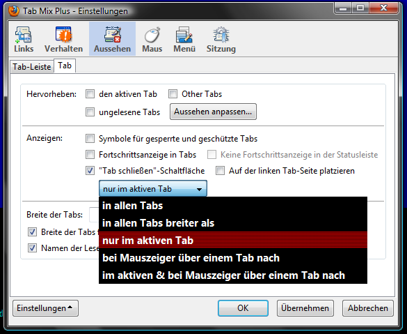 Momentan ist auf jedem Tab ein rotes Kreuz drauf. Leider hab ich das Problem, daß ich immer mal wieder auf dieses Kreuz komme und somit den Tab schliesse, obwohl ich es gar nicht will.