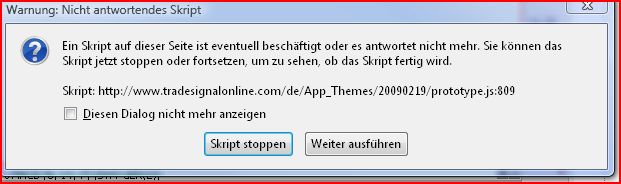 Ich arbeite häufig mit Aktiencharts bei http://www.tradesignalonline.de. In den letzten Tagen taucht beim Öffnen eines Charts sehr oft das nachstehende Fenster auf.