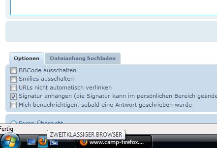 Ich habe Vista und Firefox unten in der start Leiste drin, wenn man mit der Maus da drüber geht, da steht dann: ZWEITKLASSIGER BROWSER .... ich habe das nicht geändert