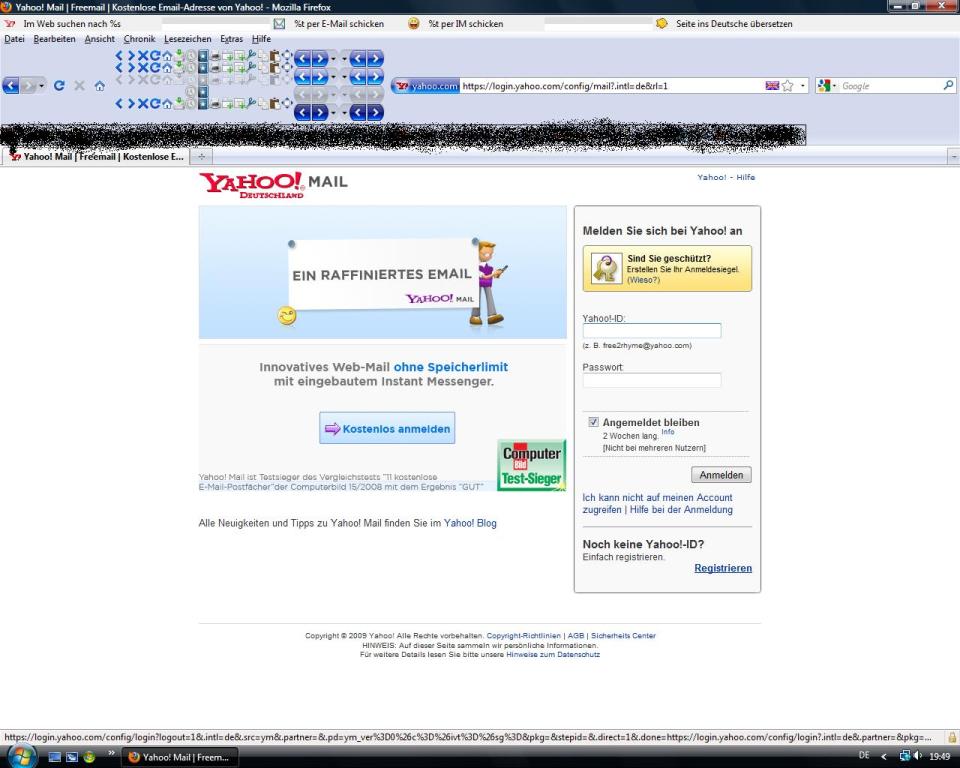 Weiterhin habe ich ein Problem, wenn ich mich von Yahoo komplett abmelde, um meinen 2.Account zu öffnen. Die Leiste schaut dann total komisch aus (siehe Anhang) und ich muss das Fenster komplett schließen, um mit Mozilla weiter zu arbeiten.