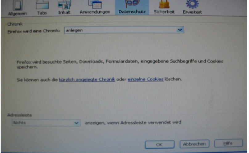 Menü Datenschutz unvollständig