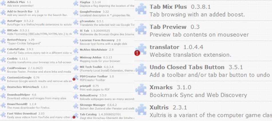 Welche Erweiterungen sind bei dir unter Extras->Addons->Erweiterungen gelistet?