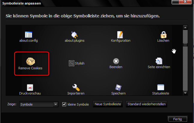 habe das nun mit Remove for Cookies versucht und es ging nicht (das Icon da zu plazieren)