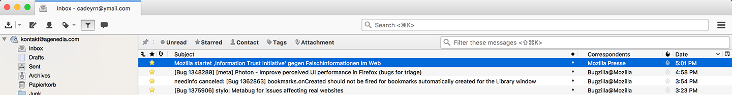 In verwandter News: Thunderbird nimmt die neue Tab-Form aus Firefox 57 auch an. ![]()