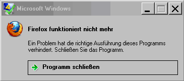 Beim Schließen des (jungfräulichen) Profils ist der FF wieder abgestürzt mit bekannter Fehlermeldung