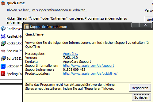 Quicktime läuft nach Update nicht mehr, Symbol+Fragezeichen
