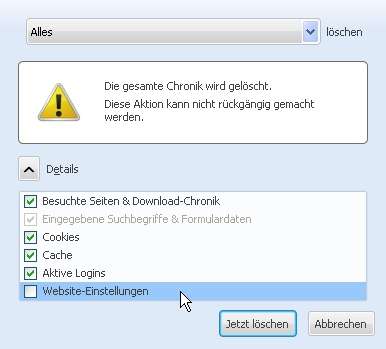erlaube ich Firefox (Neuste Chronik löschen...) Details Website-Einstellungen (Jetzt löschen)