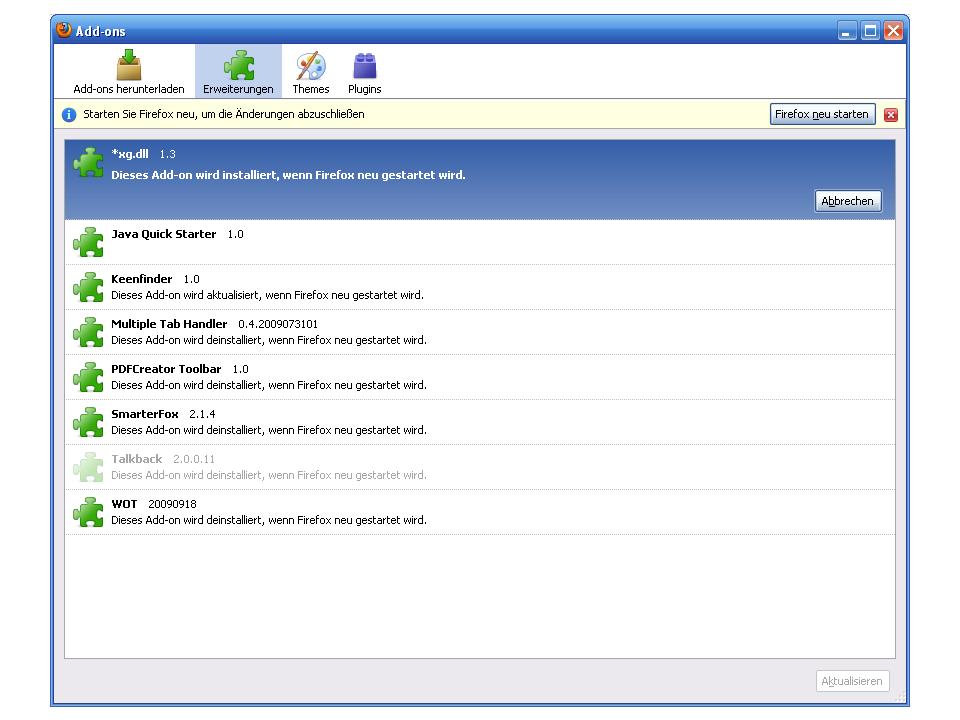 Diese Add-on wird installiert, wenn Firefox neu gestartet wird .
