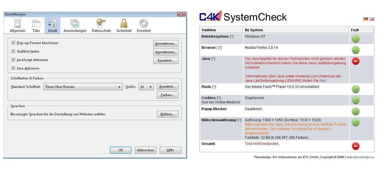 Es geht um eine Seite aus http://www.vr-bildung.de. Dabei kann eben die Seite nicht angezeigt werden und es erscheint der Check, den ich im Anhang als Bild gehängt habe an, dass Java nicht installiert ist. Wie ihr aber im Anhang auch seht, ist bei mir auch Java aktiviert und auch installiert (aktuelle Version, wie auch Java selbst bestätigt, da beim Downloadversuch nur die Meldung kommt, dass Java bereits in aktueller Version installiert ist).
