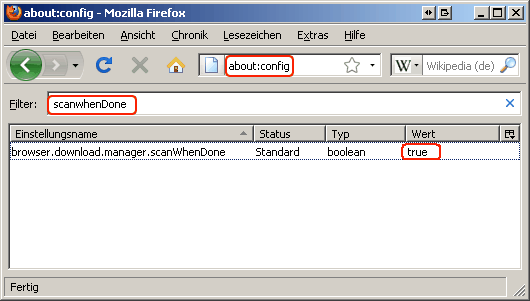 Zitat von RSoutsideWas muss ich einstellen, um mit dem im Firefox integrierten Downloader heruntergeladene Dateien sofort nach dem Download nach Viren zu scannen?