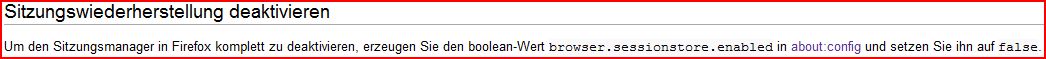 Dann scroll etwas runter bis Du zu: ...Sitzungswiederherstellung deaktivieren...kommst, und da klickst Du auf :..about:config..