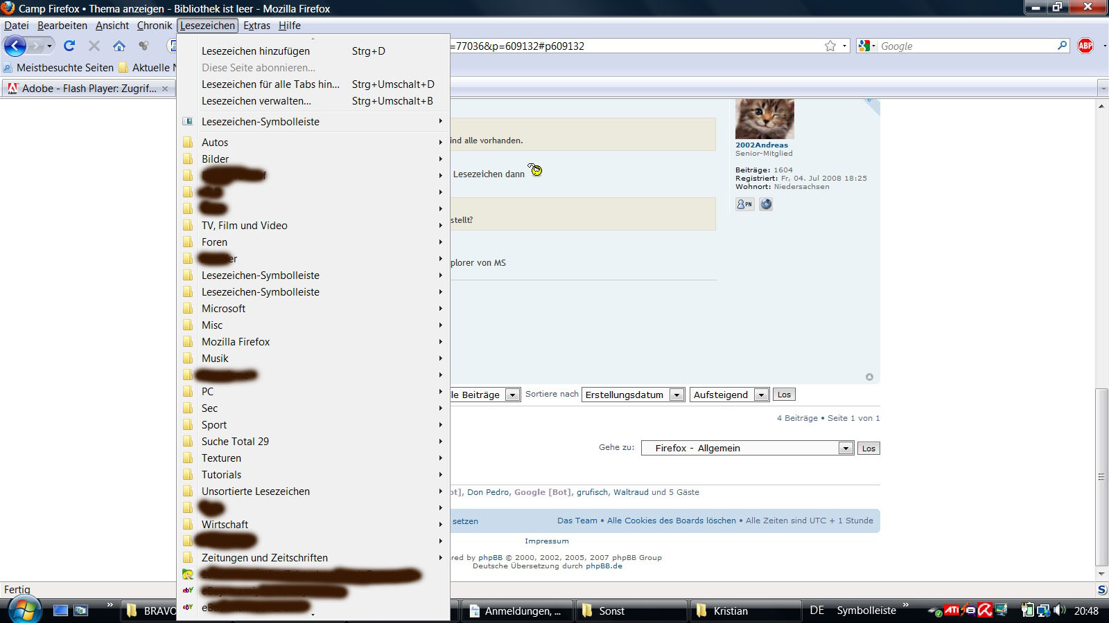 Bild 1 zeigt die aufgeklappte Liste meiner Lesezeichen.
