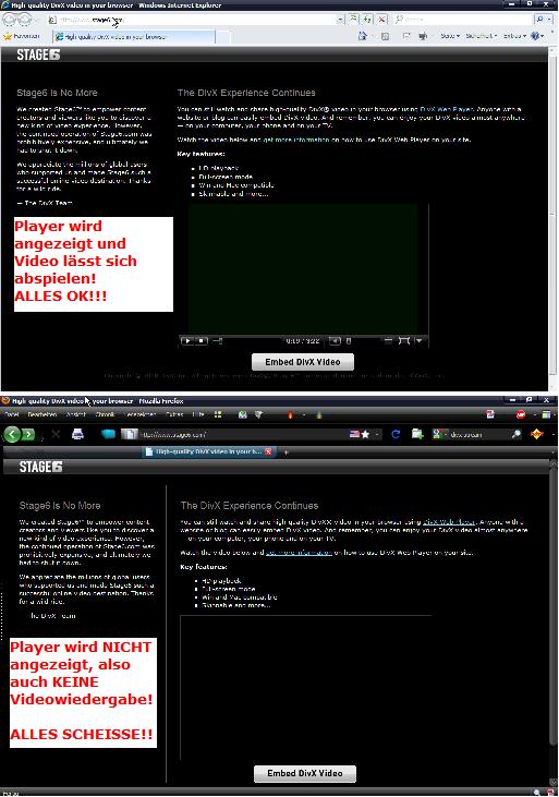 Alles soweit in Ordnung, nur leider wird nun der DivX Webplayer nicht mehr angezeigt.